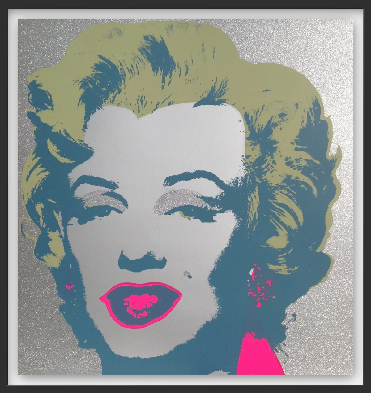 This week we are focusing on prints that refuse to sit flat. Works that catch the light, shift as you move through a room, and add a subtle sense of motion to the wall. From satirical statements and pop interventions to historical portraiture and iconography, these pieces use glitter and diamond dust as material, not embellishment.