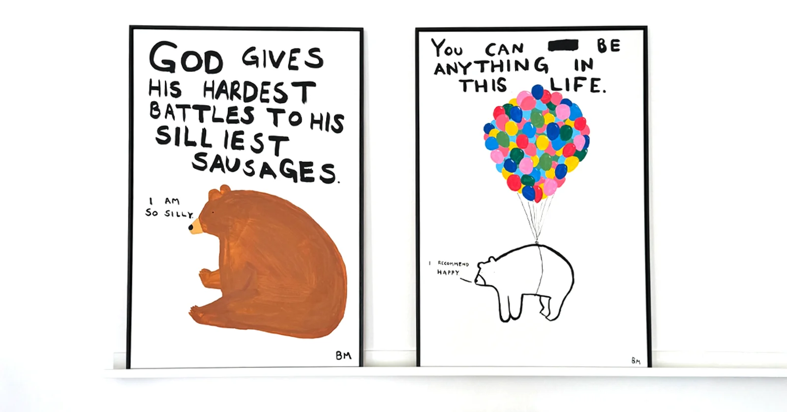 Inspired by two of Billy's most popular prints, we are proud to introduce two BIG original canvases in the form of Be Anything and Silliest Sausages.