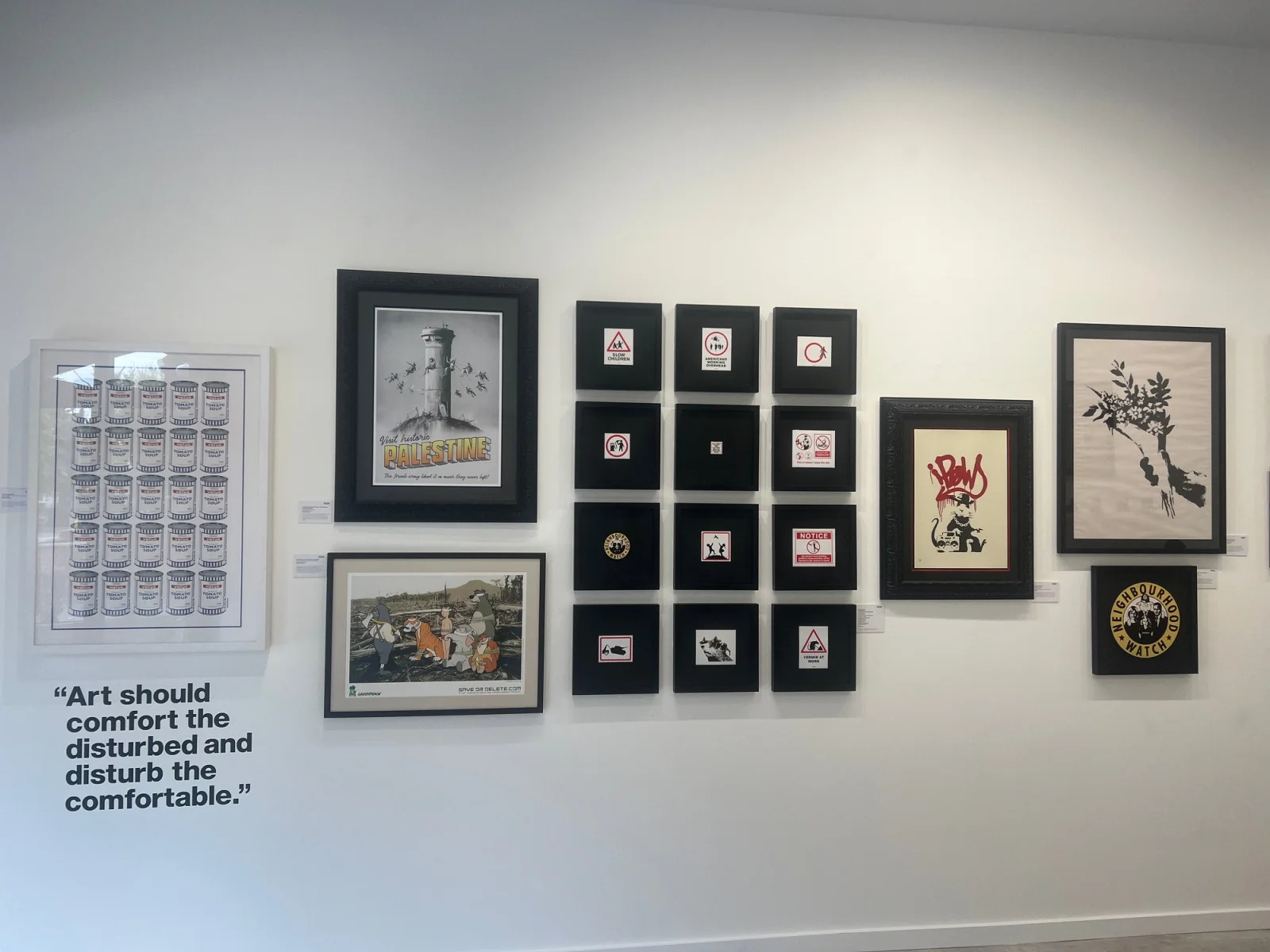 Posters like Banksy V Bristol Museum: these were created to celebrate Banksy’s takeover of his hometown museum in 2009. There is a set of all four, framed, which look amazing.