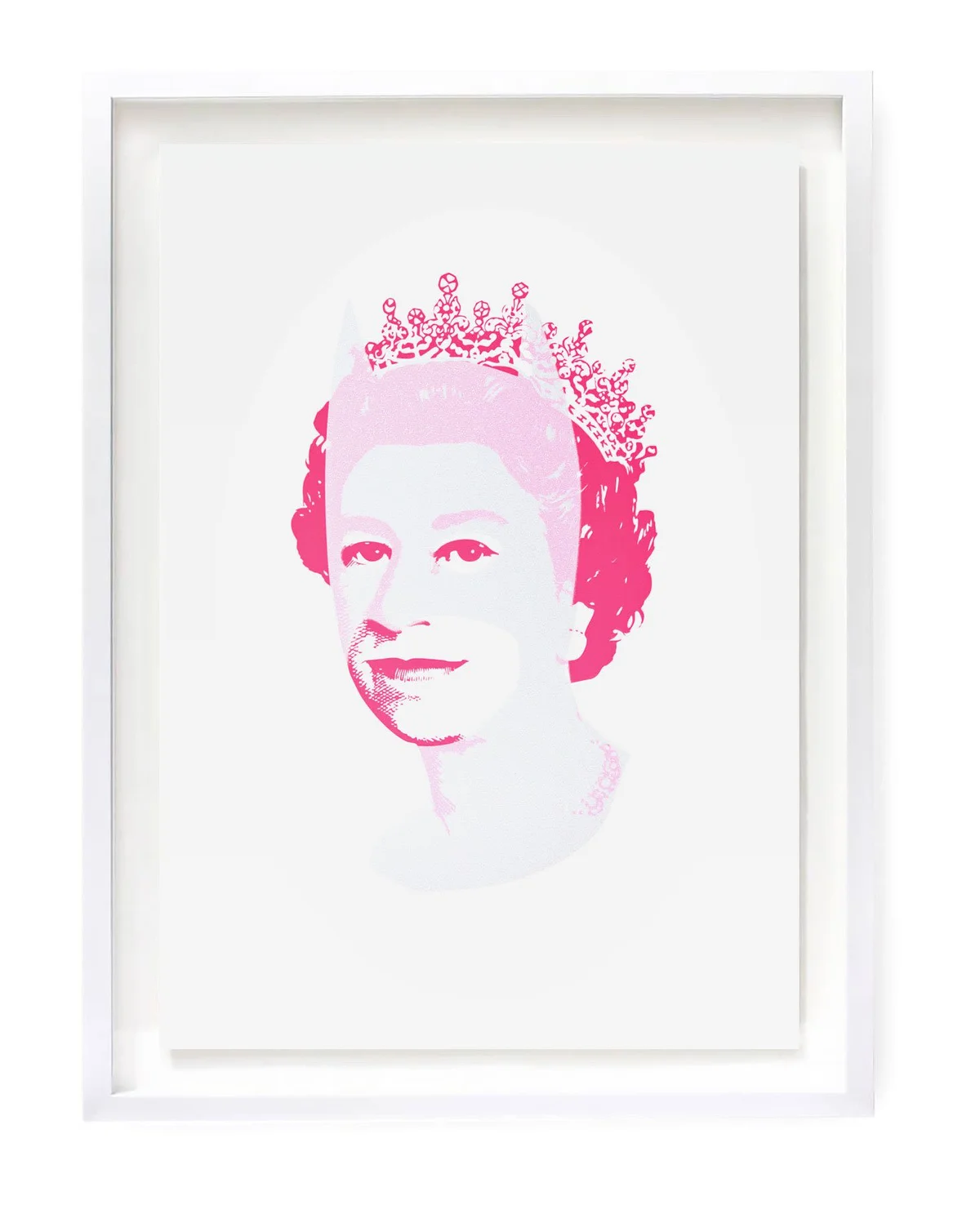 A 2 colour screenprint on Somerset Satin 300gsm paper with Diamond Glitter and Neon Pink ink. Sold framed it measures 60 x 42cm and is from an edition of 36, signed and numbered by artist. It is priced at £360.