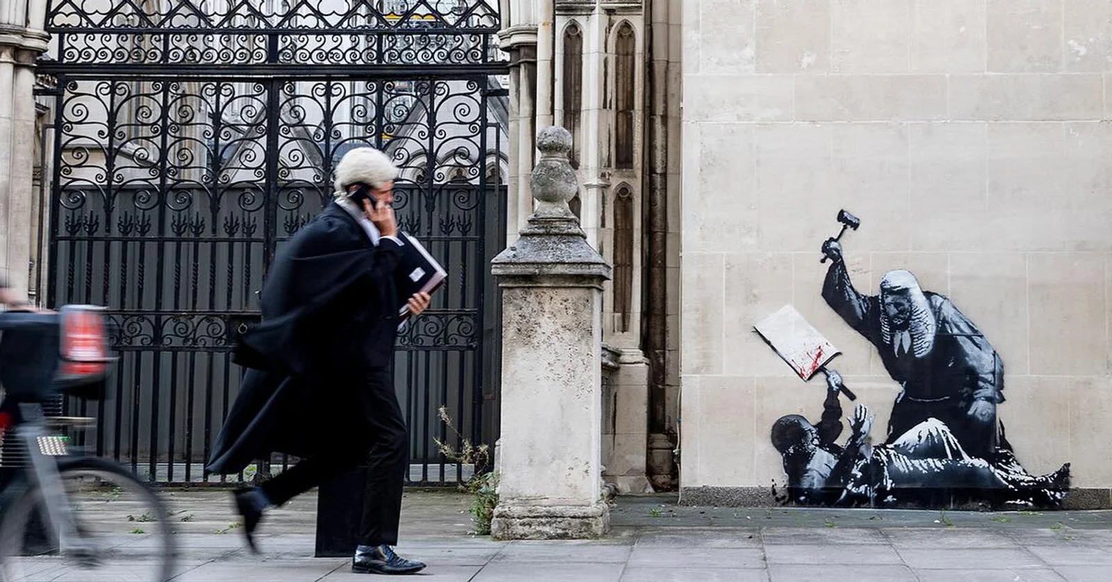 As London awoke to tube strikes this morning, many eagle-eyed commuters spotted a new Banksy mural upon the outer walls of the Royal Court of Justice in central London.