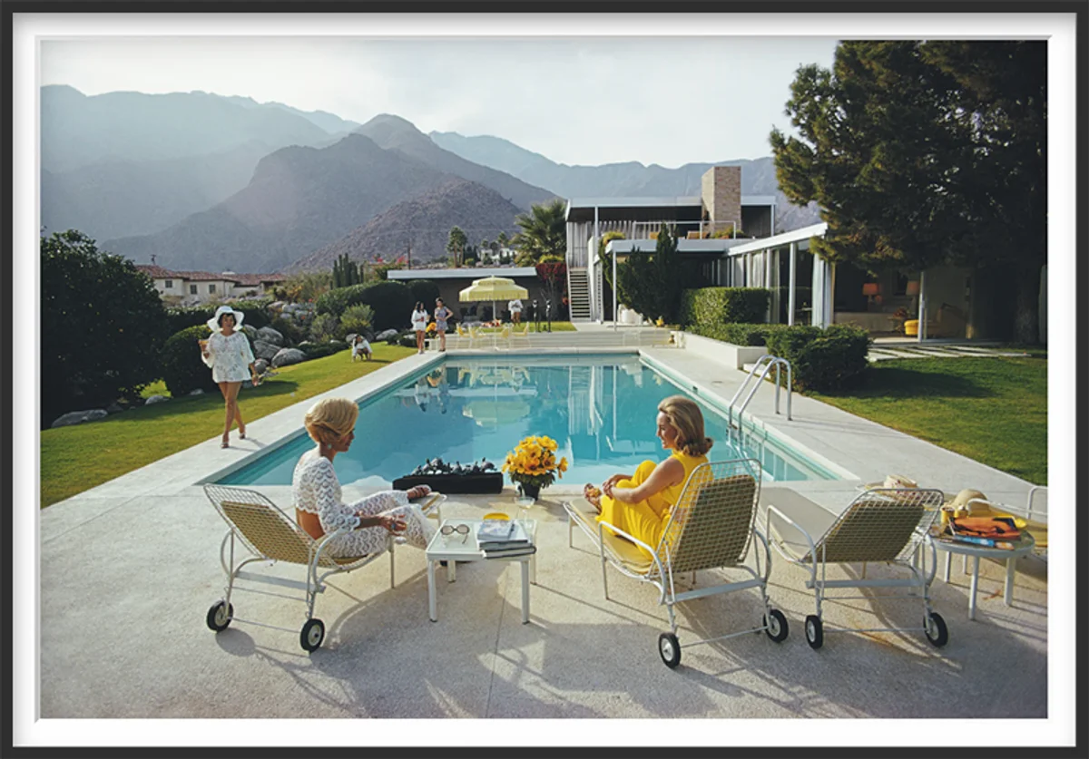 From sun-drenched poolside scenes to jet-set gatherings across Europe and California, oversized Slim Aarons photography brings light, openness, and visual rhythm into a space, shaping how a room feels as much as how it looks.