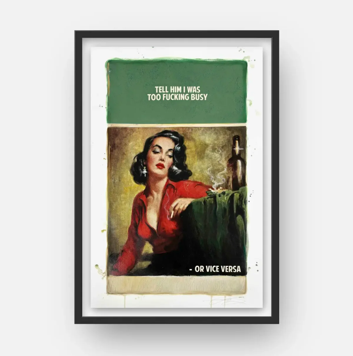 Since unveiling their real identities, they have become household names in contemporary art, known for their slick wit and bold aesthetic with pulp fiction style covers overlaid with punchy one-liners that skewer everything from fame and politics to self-worth and drinking habits.